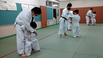 - 成人より高齢者まで、初心者も含めて生涯学習の場として柔道の稽古を行っていますので、やってみたいと思われる方がいらっしゃったら、いつでもおいで下さい。